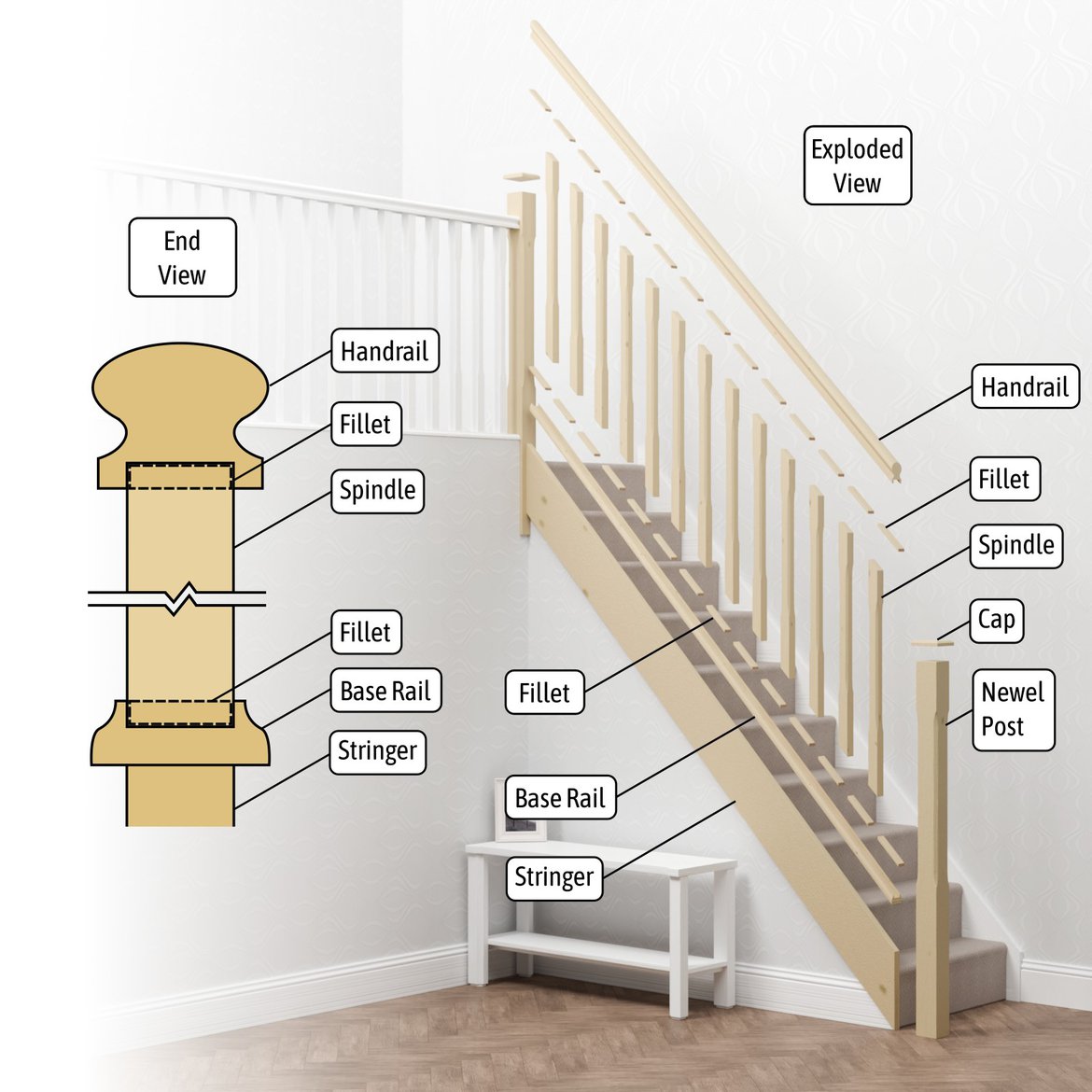 Fillets: The small pieces of timber that sit between the spindles on the baserail and handrail.